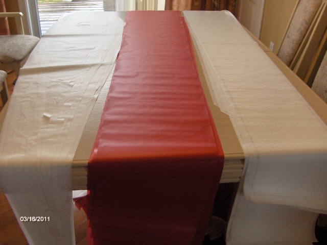 Le tissu tracé et découpé.